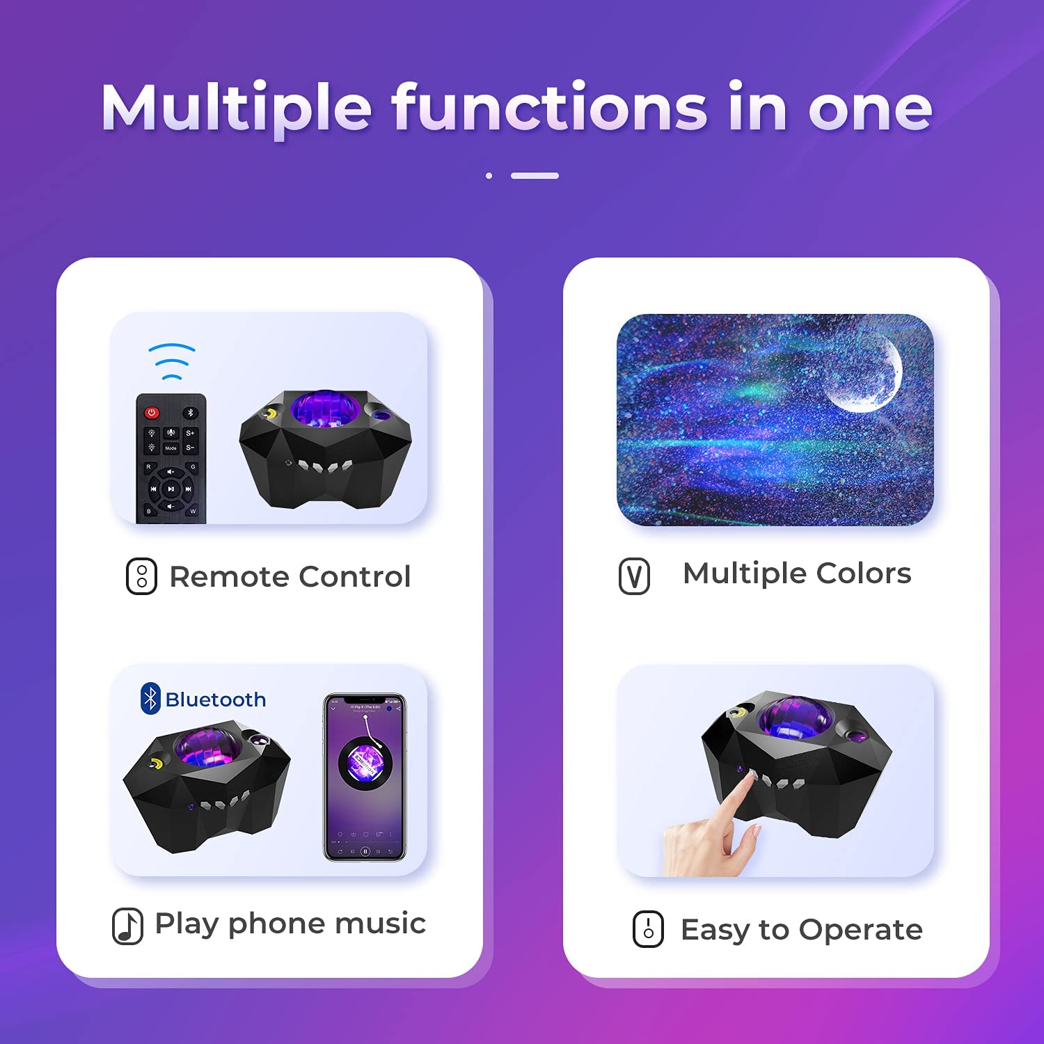 Easily adjust brightness, colors, and projection modes using the remote control or Bluetooth connection, giving you complete control over your personal galaxy.